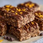 These Almond Butter Chocolate Chip Zucchini Bars are a wholesome and delicious treat, blending nutritious ingredients like rolled oats, almond butter, and fresh zucchini into a moist, flavorful snack or dessert. Naturally sweetened with medjool dates and maple syrup, these bars provide a perfect balance of health and taste, with optional chocolate chips adding a delightful touch of indulgence.