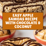 Apple Samoas are a fresh and healthy twist on the classic dessert, combining crisp apple slices with creamy nut butter, toasted coconut, and a drizzle of rich chocolate. This no-bake treat is quick to prepare and perfect for satisfying your sweet tooth without guilt.