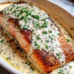 This Baked Boursin Salmon recipe features tender salmon fillets topped with creamy, flavorful Boursin Garlic & Fine Herbs cheese, baked to perfection. Enhanced with lemon zest, garlic, and fresh parsley, this dish is a quick and elegant meal perfect for weeknights or entertaining guests. Optional sides like cherry tomatoes or asparagus can be roasted alongside for a complete and delicious dinner.