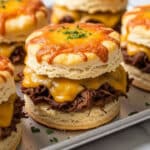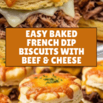 These Baked French Dip Biscuits are a delicious twist on the classic sandwich, featuring flaky baked biscuits stuffed with savory roast beef and provolone cheese, brushed with a flavorful herb and Worcestershire butter, and served with warm beef broth for dipping. Perfect as a comforting appetizer or hearty snack.