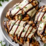 - Garnish and Serve: Garnish with fresh basil or parsley if desired and serve the dish warm, enjoying the combination of tender chicken, melted cheese, and savory balsamic sauce.