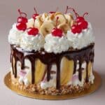 This Banana Split Cake is a delightful layered dessert combining the tropical flavors of pineapple and banana with a creamy cheesecake and banana pudding filling. Topped with whipped cream, maraschino cherries, walnuts, and a drizzle of chocolate syrup, this cake offers a nostalgic taste of the classic banana split in cake form. Perfect for gatherings and special occasions, it’s easy to prepare and a guaranteed crowd-pleaser.