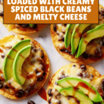 - Assemble and Serve: Remove the tostadas from the oven. Spoon a generous amount of the seasoned black bean mixture onto each cheesy tostada. Top with thin slices of fresh avocado and drizzle with your favorite hot sauce to taste. Serve immediately for the best flavor and texture.