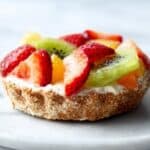 To maintain freshness, it’s best to store the bagel halves with cream cheese separately and add the fruit topping right before serving. This prevents soggy bagels and keeps fruit fresh.