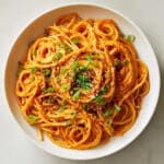 This Caramelized Onion Pasta with Chili Oil is a flavorful and aromatic dish featuring sweet, slow-cooked onions tossed with al dente pasta and a spicy, smoky chili oil. Finished with Parmesan cheese and fresh herbs, it’s a simple yet elegant meal perfect for spice lovers seeking a comforting Italian-inspired twist.