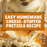 These homemade Cheese-Stuffed Pretzels are soft, golden-brown, and bursting with melted cheese inside. Perfect as a savory snack or appetizer, the pretzels have a slightly crispy crust from a baking soda bath and a rich cheesy filling that makes every bite irresistible. This recipe guides you through making the perfect dough, shaping, boiling, and baking pretzels to cheese-filled perfection.