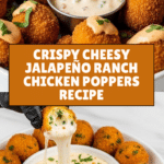 These Cheesy Jalapeño Ranch Chicken Poppers are crispy, golden-brown bite-sized treats filled with shredded chicken, sharp cheddar cheese, and spicy jalapeños, seasoned with ranch and smoky spices. Deep-fried until perfectly crunchy and served with a tangy, creamy ranch dip, they make an irresistible appetizer or party snack that balances heat and creaminess in every bite.