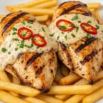 This Chicken Fillet in Spicy Creamy Garlic Parmesan Sauce is a deliciously rich and comforting dish that’s perfect for a weeknight dinner. The creamy sauce with a hint of heat pairs beautifully with tender chicken fillets and crispy fries for a satisfying meal.