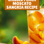 Keywords: Peach Moscato Sangria, chilled sangria, summer cocktail, fruity wine cocktail, peach sangria recipe, refreshing drinks, easy sangria
