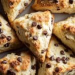 Keywords: Chocolate Chip Scones, breakfast scones, easy scone recipe, chocolate baked goods, flaky scones