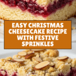 This festive Christmas Cheesecake Dessert features a buttery graham cracker crust filled with a creamy, smooth cheesecake mixture blending cream cheese, sour cream, and whipped heavy cream. Topped with colorful red and green sprinkles, it’s a perfect holiday treat that’s rich, indulgent, and elegantly simple to prepare and bake.