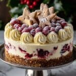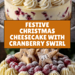 This Christmas cheesecake is a festive dessert featuring a crisp graham cracker crust, a tangy cranberry jam swirl, and a creamy white chocolate mousse topping. Its layers combine classic holiday flavors in an elegant and delicious treat perfect for any celebration.
