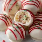 Keywords: Christmas truffles, holiday treats, no bake dessert, white chocolate truffles, cake balls, festive sweets