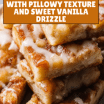 - Finish with vanilla icing: In a bowl, combine powdered sugar, milk, and vanilla extract. Stir until smooth and glossy. Drizzle the icing evenly over the warm focaccia. Slice into squares and serve warm or at room temperature.