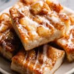 This Cinnamon Focaccia recipe features a tender, chewy bread infused with warm cinnamon and brown sugar flavors. The dough is slow-risen for optimal texture, topped with a rich brown butter and cinnamon glaze before baking to golden perfection. Finished with a smooth vanilla icing drizzle, this sweet-savory twist on traditional focaccia offers a delightful treat perfect for breakfast, brunch, or dessert.