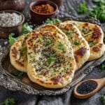 This Cottage Cheese Garlic Naan is a deliciously soft and fluffy Indian flatbread made with a blend of cottage cheese, eggs, and flours, infused with aromatic garlic and finished with a buttery brush and fresh herbs. Perfect as a low-carb, protein-rich alternative to traditional naan, it’s quick to prepare on the stovetop and pairs beautifully with curries or as a tasty snack on its own.