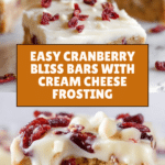 Keywords: cranberry bliss bars, white chocolate bars, cream cheese frosting bars, holiday dessert bars, cranberry dessert