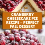 Cranberry Cheesecake Pie is a delightful fall dessert combining tart cranberries with a creamy cheesecake layer and a cinnamon sugar cookie crust. Its vibrant colors and rich flavors make it perfect for any occasion, from cozy family dinners to festive gatherings.