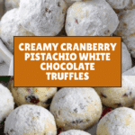 These Cranberry Pistachio White Chocolate Truffles are a delightful and elegant treat perfect for holidays or special occasions. Rich white chocolate blended with butter and cream creates a smooth, creamy center studded with tart dried cranberries and crunchy toasted pistachios. Rolled in powdered sugar for a delicate finish, these truffles offer a perfect balance of sweet, fruity, and nutty flavors with a melt-in-your-mouth texture.