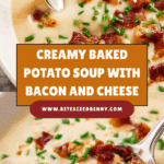 This creamy and comforting Baked Potato Soup combines the hearty flavor of russet potatoes with crispy bacon, sharp cheddar cheese, and a touch of chives for garnish. It’s a perfect cozy meal for chilly days, featuring tender baked potatoes blended into a velvety soup base enriched with half and half and sour cream.