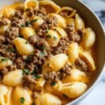 Creamy Beef and Shells is a comforting, hearty dish that combines tender ground beef with pasta shells in a rich, velvety sauce. Perfect for a weeknight dinner, this recipe is simple yet full of flavor.