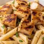 - Cook the Pasta: While chicken cooks, boil a large pot of salted water. Add pasta and cook according to package instructions (8-10 minutes) until al dente. Reserve 1 cup of pasta cooking water, then drain pasta and toss with a little olive oil to prevent sticking.