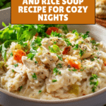 Keywords: creamy chicken soup, chicken and rice soup, comforting soup, hearty dinner soup, easy homemade soup