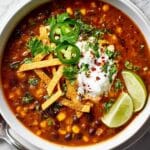 - Serve and Garnish: Ladle the soup into bowls and garnish with crunchy tortilla strips, a dollop of sour cream, sliced jalapenos, and fresh chopped cilantro for a vibrant finish.