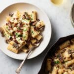 Keywords: creamy mushroom pasta, mushroom rigatoni, pasta with cream sauce, toasted pecans pasta, easy mushroom dinner, Italian mushroom pasta
