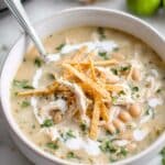 A hearty and flavorful Crockpot Salsa Verde Chicken Soup featuring tender shredded chicken, green chiles, beans, and tangy salsa verde. Perfect for a comforting meal with easy slow cooker preparation and customizable toppings like sour cream, cheddar cheese, cilantro, and crunchy tortilla chips.