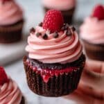 Decadent Raspberry Chocolate Lava Cupcakes feature a moist chocolate cupcake with a molten raspberry preserve center, topped with a luscious raspberry buttercream frosting and fresh raspberries. Perfectly balancing rich chocolate and bright raspberry flavors, this recipe promises an indulgent dessert experience that’s both impressive and easy to make.