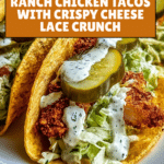 - Step 6: Mix cottage cheese with ranch seasoning and a splash of lemon juice. Drizzle this mixture over the filled tacos. Add pickle brine if using, and top with the crispy cheese lace before serving.