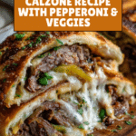 This easy homemade calzone recipe is a delicious and customizable Italian-inspired meal featuring a golden, crispy dough stuffed with pizza sauce, sautéed vegetables, pepperoni, and melted mozzarella cheese. Perfect for a quick dinner or a fun cooking project, these calzones bake to perfection with a crispy crust and gooey filling.