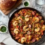 Keywords: Jambalaya, Cajun recipe, shrimp and sausage, one pot meal, spicy rice dish, easy dinner