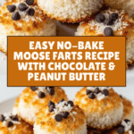 Easy No-Bake Moose Farts are delicious, rich, chocolatey treats combining graham cracker crumbs, cocoa powder, peanut butter, and cream cheese. These no-bake delights are perfect for a quick and simple dessert, offering a smooth, creamy texture with delightful mini chocolate chips inside. Ideal for snack times or parties, they require minimal prep and chill to set in the fridge.