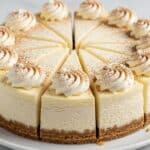 This Eggnog Cheesecake with Nutmeg Whipped Cream is a festive, creamy dessert perfect for holiday celebrations. It features a spiced graham cracker crust, a smooth eggnog-infused cheesecake filling, and a luscious nutmeg-flavored whipped cream topping that adds a rich seasonal flair.