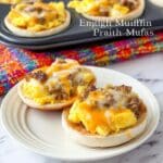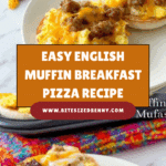Keywords: English Muffin Breakfast Pizza, breakfast pizza, quick breakfast, sausage and egg pizza, savory breakfast, easy breakfast recipe