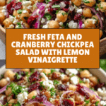 This Feta and Cranberry Chickpea Salad with Lemon Vinaigrette is a bright and satisfying dish that combines creamy, tangy, and sweet flavors in every bite. It’s perfect as a light lunch or a colorful side for dinner, offering both nutrition and a refreshing taste.
