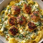 Garlic Butter Chicken Bites with Savory Creamy Parmesan Pasta is a warm, comforting dish that combines tender chicken cooked in garlicky butter with a rich, creamy Parmesan pasta. It’s perfect for a satisfying weeknight dinner that’s both simple to prepare and full of flavor.