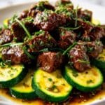 This Garlic Butter Steak Bites & Zucchini recipe is a quick and easy low-carb dinner option perfect for busy weeknights. Tender steak bites are seared to perfection and combined with sautéed zucchini and fragrant garlic butter, creating a savory, satisfying meal that’s both flavorful and nutritious.