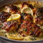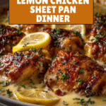 This Garlic Lemon Chicken recipe is a flavorful and easy-to-make meal featuring tender chicken thighs roasted alongside baby potatoes and broccoli. The zesty lemon-garlic marinade pairs perfectly with a creamy yogurt Parmesan herb sauce for a fresh, vibrant dinner that’s sure to please the whole family.