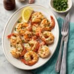6. Garnish and serve: Remove the roasted shrimp from the oven. Sprinkle with freshly chopped parsley for a burst of color and freshness. Serve immediately with lemon wedges on the side for squeezing over the shrimp to add a bright, acidic contrast.