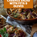 Keywords: Greek cabbage salad, shredded cabbage salad, feta cheese salad, olive salad, Mediterranean salad, no-cook salad