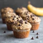 Keywords: banana muffins, healthy muffins, chocolate chip muffins, Greek yogurt muffins, oat muffins, breakfast muffins, wholesome muffins