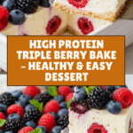 This High Protein Triple Berry Bake is a delicious, nutrient-packed dessert or breakfast option featuring full-fat cottage cheese, eggs, almond flour, and mixed berries. It’s naturally sweetened with honey or maple syrup and infused with vanilla and lemon zest, creating a moist and flavorful bake that’s perfect for a healthy treat or post-workout meal.