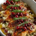 - Add Cranberries: Evenly sprinkle fresh or frozen cranberries over the chicken to add bursts of tartness and color.