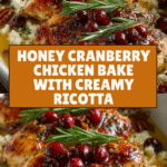 This Honey Cranberry Chicken Bake with Ricotta Cheese is a deliciously balanced dish, combining sweet, tangy, and creamy flavors. Perfect for a cozy dinner, it’s simple to prepare and sure to impress your family or guests.