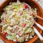 Store any leftover salad in an airtight container in the refrigerator for up to 1 day. The lettuce may wilt and become soggy over time, so it’s best enjoyed fresh. If stored, toss the salad again before serving and consider adding fresh lettuce to restore crispness.