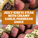 This Juicy Steak with Creamy Garlic Sauce recipe features perfectly seared ribeye steaks cooked to medium-rare with fragrant rosemary and butter basting. The steaks are paired with a rich, velvety garlic cream sauce enhanced with Parmesan and Dijon mustard, creating an elegant yet easy dinner perfect for steak lovers.