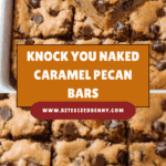 Keywords: Knock You Naked Bars, caramel bars, cookie dough bars, chocolate chip bars, pecan bars, layered dessert, easy caramel bars